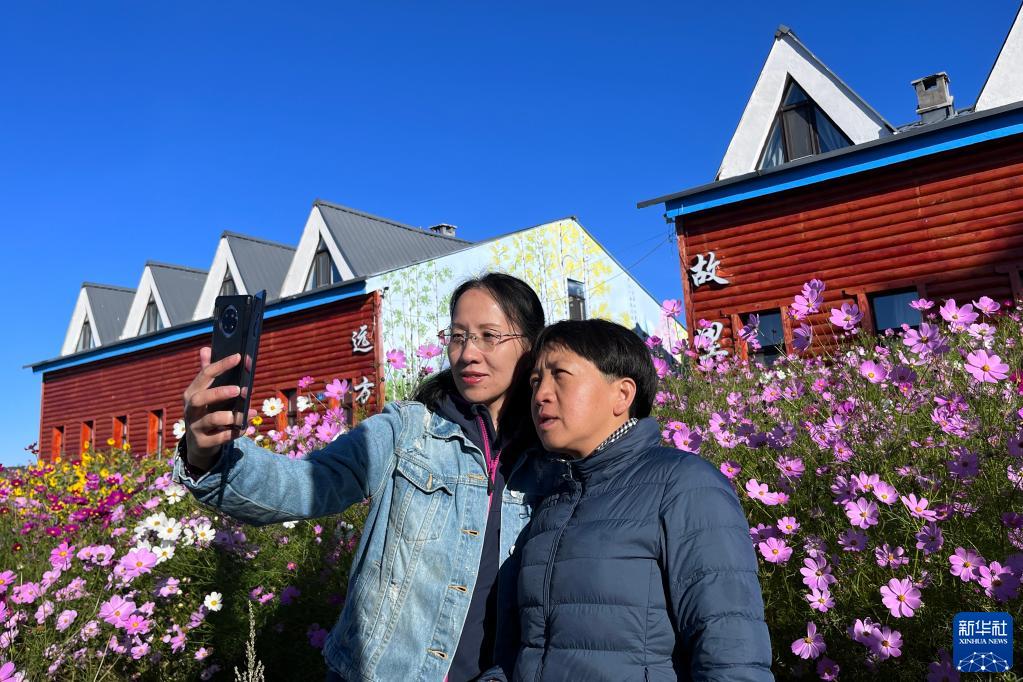 在黑龙江省漠河市北极镇北红村,游客在格桑花前拍照留影(8月27日摄)。新华社记者 杨思琪 摄 晚7时许,路灯亮起,在向日葵和格桑花的掩映下,一排排民宿别具特色。漫步在北红村,随处可见俄式风格雕塑,在夜幕笼罩下韵味十足。在黑龙江边的沿江公园,三五成群的游客们有的赏星、有的拍照,不时传来欢声笑语。 地处中俄边境的北红村位于中国最北端,与俄罗斯隔黑龙江相望。这里冬季漫长寒冷,最低气温达零下40多摄氏度,农作物产量低,曾是省级贫困村。2018年,全村建档立卡户全部脱贫。全村现有常住人口137户,其中脱贫户49户。 “你看我换的地板,嘎嘎好!”看到记者,脱贫户刘桂英迫不及待地讲述两年来的变化。2019年底,记者采访她时,她家的木地板已经残损,踩上去咯吱作响。2020年,她换上了崭新的米色地板。