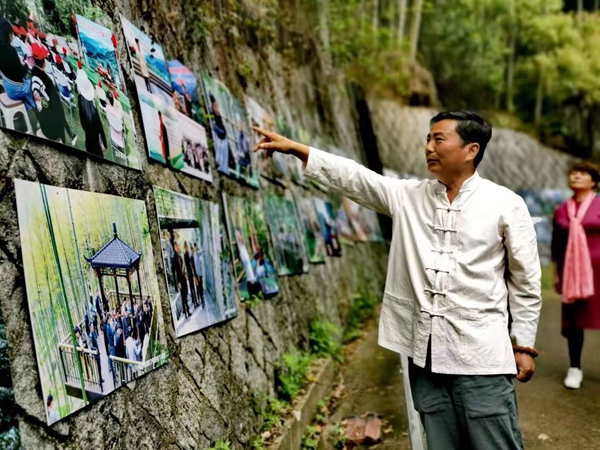图说:项亨旺在介绍自己的作品 王力中/摄 这边红歌唱得热闹,那边民宿主人项亨旺的“百幅图片、百年家史、百年巨变”展,也吸引了在此消费的朋友。从上海来的游客徐幸康边走边看,敬佩之情有感而发:“在建党百周年之际,这些照片从项师傅家庭的变化,上升到国家的变迁,真是不简单。” 在钟管镇曲溪村曲尺湾户外用地,这里的丛林探索、百步穿杨、扎筏泅渡等十余项户外活动,人头拥挤。“这里空气很清新,活动很刺激。我们一家从苏州自驾过来很方便,五一来这里很满意。”刚从高空自行车上下来的游客钟女士表示。 “五一期间,每天游客都有四五千人,比平时多了10多倍。”钟管镇党委委员陈佳伟说。 与曲溪村一样闹忙的莫干山镇,更是游客摩肩接踵。“我们早早做好了准备,但民宿主们还是纷纷问谁家是否有房间多。”仙潭村党总支书记、村主任沈蒋荣高兴地说,村里500多家农户,民宿等业态就有180多家,这几天,民宿主们生意全线火爆。